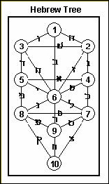 (Western Tree) (= Kether, Sephirah 1) (= Chokmah, Sephirah 2) (= Binah, Sephirah 3) (= Gedulah, Sephirah 4) (= Geburah, Sephirah 5) (= Tiphareth, Sephirah 6) (= Netzach, Sephirah 7) (= Hod, Sephirah 8) (= Yesod, Sephirah 9) (= Malkuth, Sephirah 10) (= Aleph, 1>2) (= Beth, 1>3) (= Gimel, 1>6) (= Daleth, 2>3) (= Heh, 2>6) (= Vav, 2>4) (= Zayin, 3>6) (= Cheth, 3>5) (= Teth, 4>5) (= Yod, 4>6) (= Kaph, 4>7) (= Lamed, 5>6) (= Mem, 5>8) (= Nun, 6>7) (= Samekh, 6>9) (= Ayin, 6>8) (= Peh, 7>8) (= Tzaddi, 7>9) (= Qooph, 7>10) (= Resh, 8>9) (= Shin, 8>10) (= Tav, 9>10)