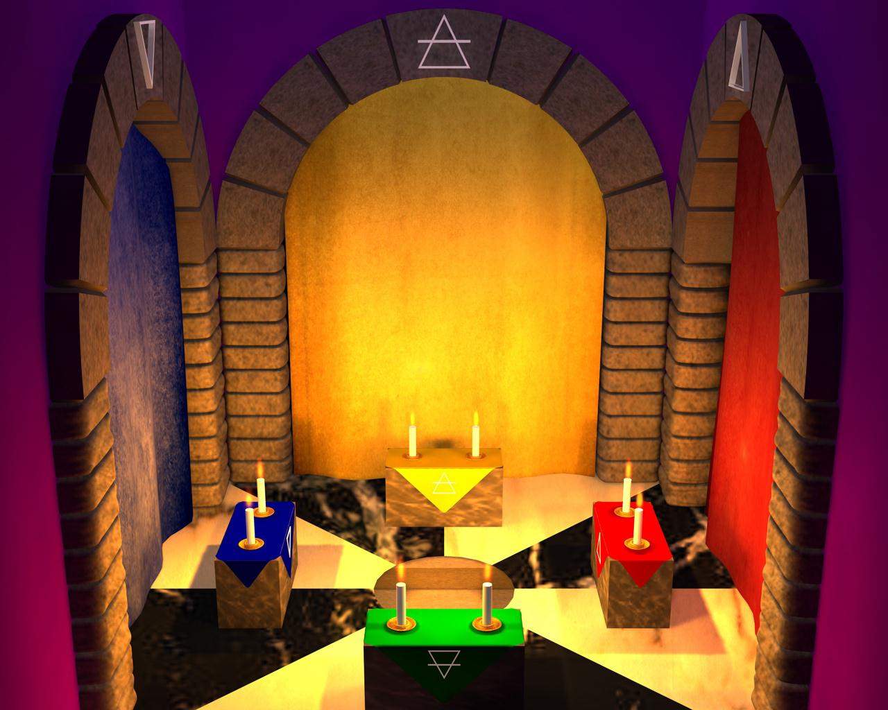 . . . Quando abbiamo finito, torniamo all'arcata (è sempre dietro di voi - basta voltarsi ed eccola lì) e l'attraversiamo tornando nel Tempio di Malkuth. Ringraziamo Raphael per la sua ospitalità quindi ci spostiamo in senso orario all'interno del Tempio.