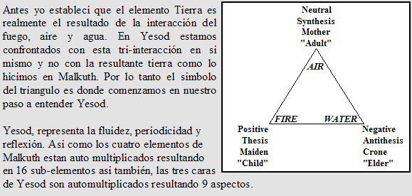 La meta de la auto maestría Yesodica es de concientemente cristalizar la sustancia astral--para manifestar una personalidad que claramente refleje el influjo individual mental. Yup, esto es un interminable proceso de toda la vida. Es también el uso conciente de la propia manera de la Naturaleza, así estamos siempre soportados por el universo en tales trabajos.