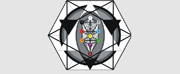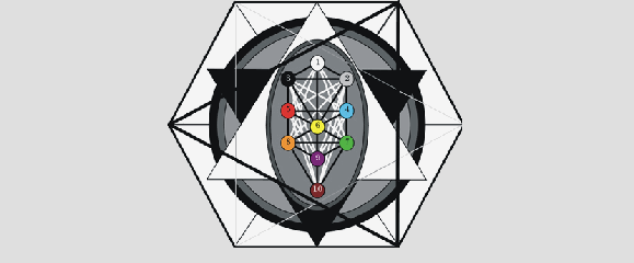 Dans nombre de ses aspects, le Cristal Sephirotique exprime le nombre six, celui de Tiphereth (la « Beauté »). De fait, la Sephirah Tiphereth, à la couleur jaune et ponctuée du nombre six, se tient à l'exact centre de l'entière composition. Chacune des pointes de l'hexagramme, avec le Soleil en son centre (planète associée à Tiphereth), représente une des planètes antiques : Saturne, Jupiter, Mars, Vénus, Mercure et Lune. Deux hexagrammes opposés, tels que nous pouvons les deviner ici, forment une figure à douze côtés qui représente le passage du Soleil à travers les douze signes du Zodiaque. Ce sont là les « pièces d'assemblage » Philosophiques de la Sphère Matérielle ou Monde Assiatique.