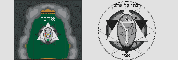 Alors que se contracte cette Lumière Sans Bornes, le Monde d'Atsilouth (Sphère Akashique ou des Archétypes) vient à l'existence, représenté ici par les deux triangles, symbole du Macrocosme et du Microcosme. D'abord le triangle blanc, pointe vers le haut, représentant le Macrocosme, la Force Archétypale et le Fluide Électrique.
